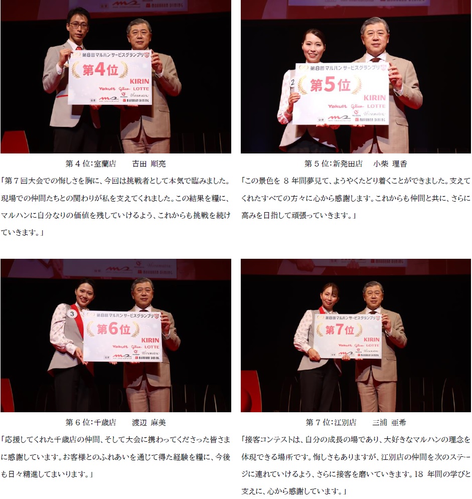 今大会では、新制服での審査を実施したほか、初出場者13名のうち店長として初の出場者が上位にランクインするなど、多彩な顔ぶれが登場。男性出場者3名全員がBEST7入りを果たすなど、例年以上にハイレベルな大会となりました。