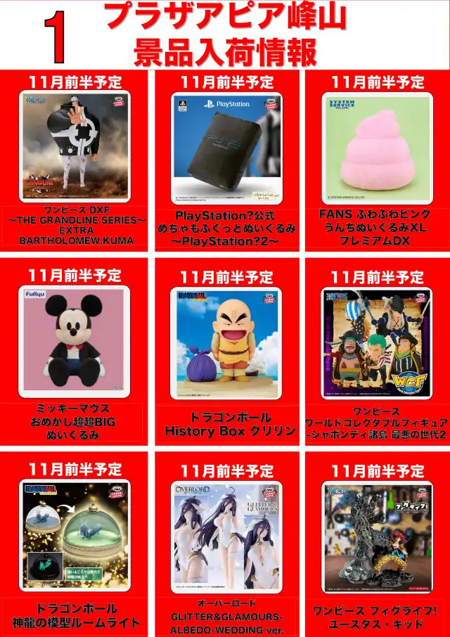 <11月クレーン景品入荷情報>