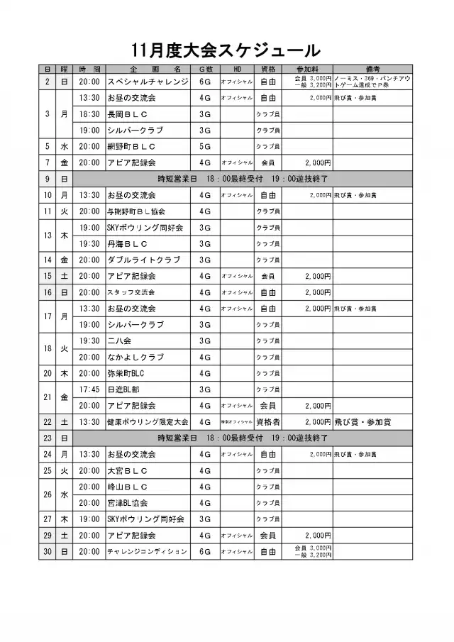 <11月度ボウリング大会>