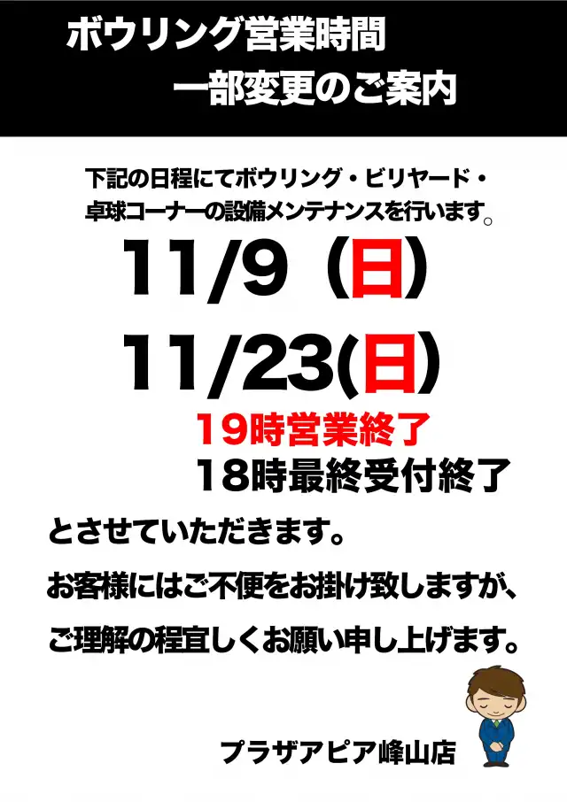 <ボウリング利用時のお願い>