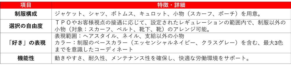 新制服制度の概要:従業員一人ひとりが自由に装飾できる新制服