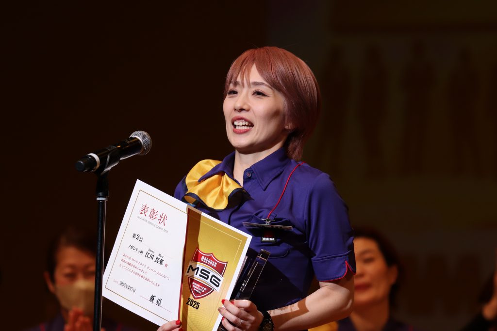 「入社して9年が経ち、東大和店とともに歩み、多くの仲間と出会い、成長してきました。ともに過ごした日々が私の支えとなり、今日この舞台に立つことができています。本当にありがとうございます。これからもメガシティ東大和が永く愛されるお店であり続けるよう、学び、成長してまいります。MSGに関わってくださった皆様のおかげで、私にとってかけがえのない一日となりました。心より感謝申し上げます。」
