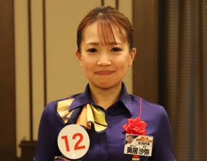 「このような賞をいただき誠にありがとうございます。正直な気持ちを申し上げますと、やはりこの舞台に立つ以上、グランプリを目指しておりましたので悔しいです。前回大会では、準グランプリという結果を頂きましたがグランプリとの差を大きく感じました。その差はスキルや想いだけでなく、自分自身が「マルハンの顔になる」という覚悟である事に気が付けたことは大きな成長でした。この1年間、その責任と覚悟を胸に、一日一日の接客に全力で向き合ってまいりました。その中で改めて感じたことは、マルハンの接客は人に感動を与えられる、本当に価値のある仕事だということです。私は、この仕事に誇りを持っています。今回この舞台で挑戦させて頂いたことも大きな経験であり、必ず自分自身の成長に繋げます。これからも、一人でも多くのお客様にマルハンの素晴らしさを全力でお伝えし続けていきます。本当にありがとうございました」